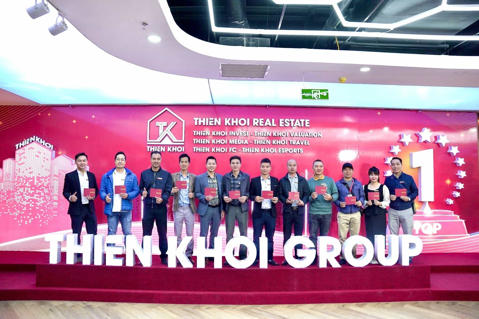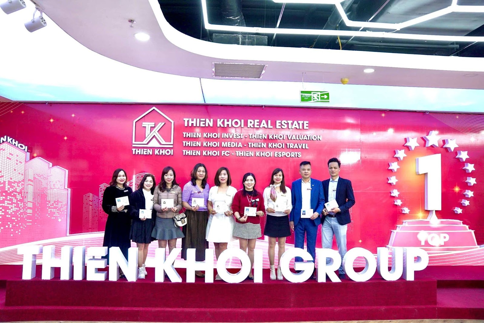 Tại Lễ trao chứng chỉ Hành nghề Môi giới Bất động sản được tổ chức ngay tại Trụ sở chính Tập đoàn Thiên Khôi, Chủ tịch Nguyễn Thành Dũng – Chủ tịch Tập đoàn Thiên Khôi và Giám đốc Vương Minh Hoàng – Chủ tịch Hội đồng thi đã trực tiếp trao chứng chỉ cho cho 159 Chuyên viên Môi giới.